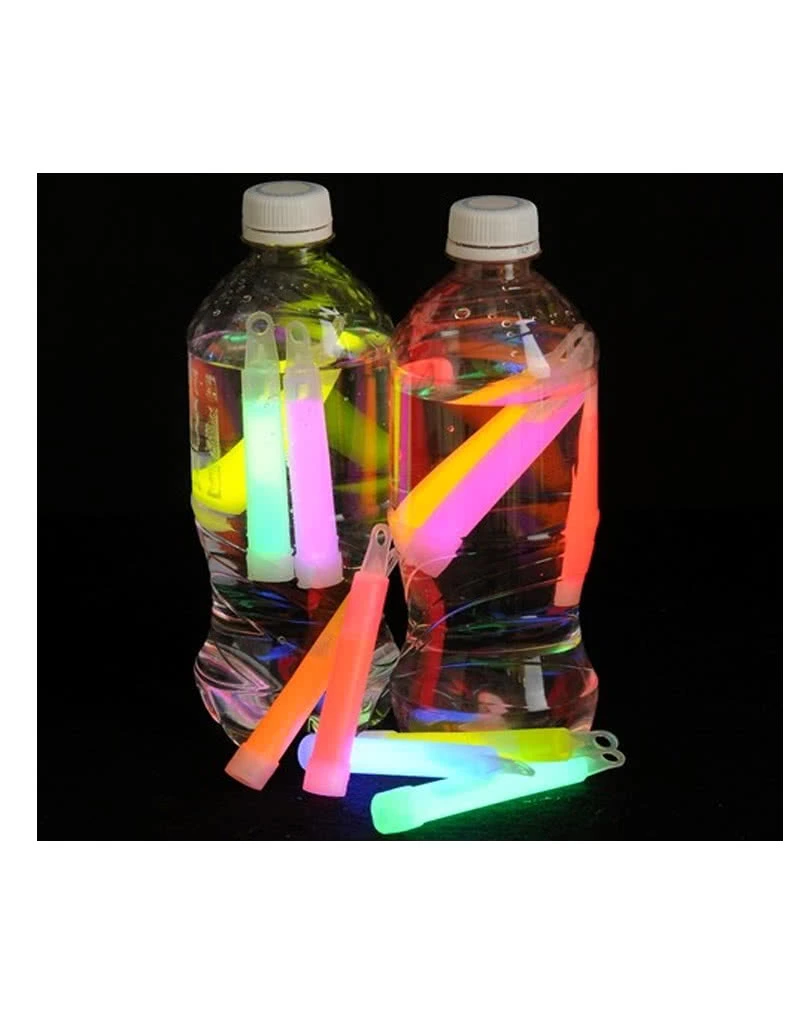 Die ca. 10 cm langen Leuchtstäbe werden in den Farben blau, grün, pink, gelb, orange und rot geliefert. Die Flüssigkeit wird von dem Kunststoffröhrchen sicher eingeschlossen. Sobald man einen der Party-Leuchtstäbe knickt, fängt die jeweilige Farbe an zu leuchten. Noch mehr leuchtende Party-Deko findest du mit Lampion weiß mit bunten Punkten und UV / Blacklight Haarspray.