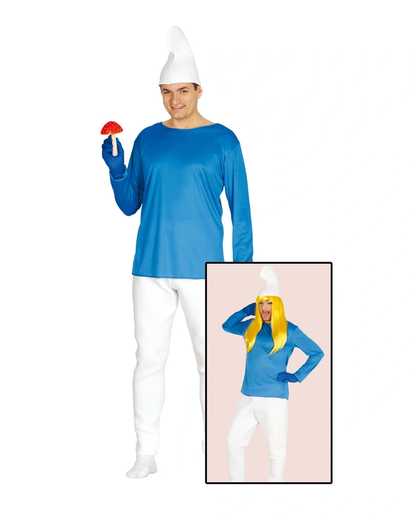 Das dreiteilige Blau-weiße Zwergen Kostüm besteht aus einer weißen Zwergenmütze, einer weißen Hose mit Gummizug und einer wattierten Vorderseite sowie einem blauen Oberteil mit langen Ärmeln. Um deinen Look abzurunden empfehlen wir die lizenzierten Schlaubi Schlumpf Maske oder das Creme Make Up Wischfest Blau.