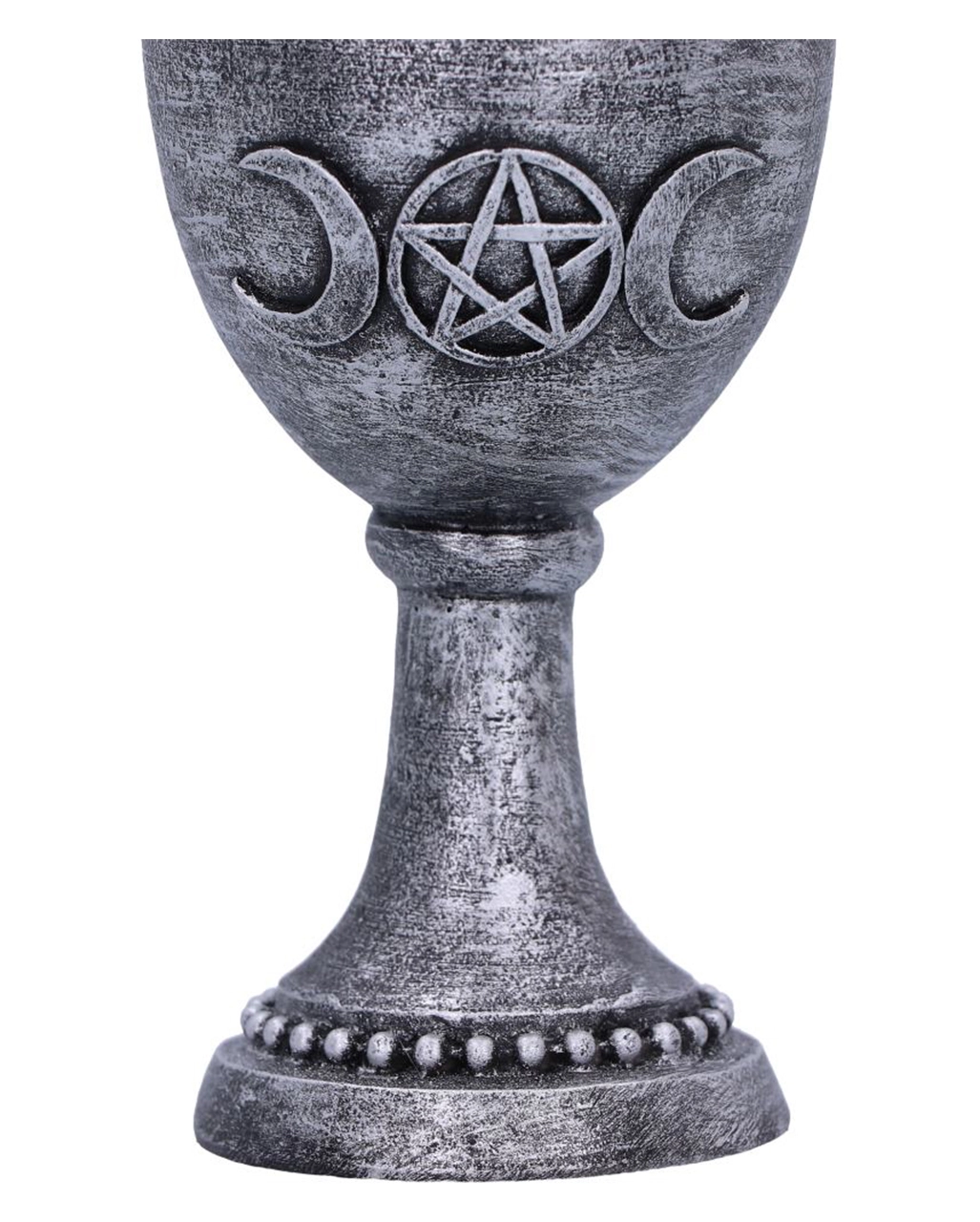 Gegossen aus feinstem Polyresin und anschließend fachmännisch handbemalt, ist diese niedliche Katzenfigur ein wunderbares Geschenk für Liebhaber von Halloween und Walpurgisnacht. Der silberne Kelch ist mit okkulten Symbolen des Dreifach-Monds und einem Pentagramm verziert