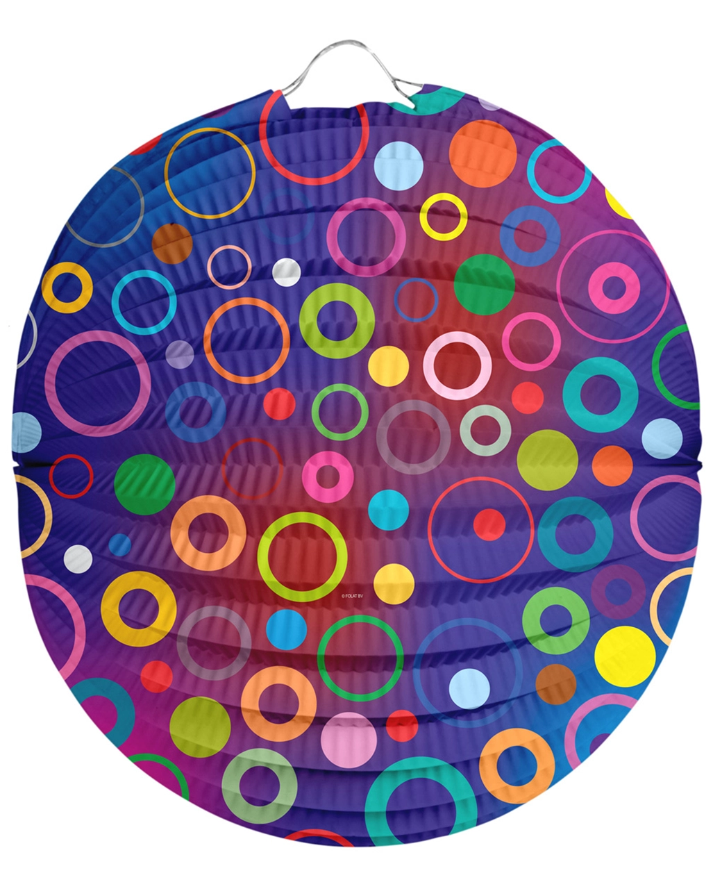 Die Karnevals Deko aus Papier ist ca 22 cm groß und eine tolle Faschings-Laterne für Karneval & Disco-Mottoparty. Die Karnevals Laterne ist super-bunt und mit farbenfrohen Kreisen und Ringen bedruckt. Da macht die Fete gleich noch mehr Spaß! Kombiniere den Lampion Disco Fete 22 cm mit Regenbogen Papier Girlande 3m und mit unserem Blaues Ring-Mobile 53 cm