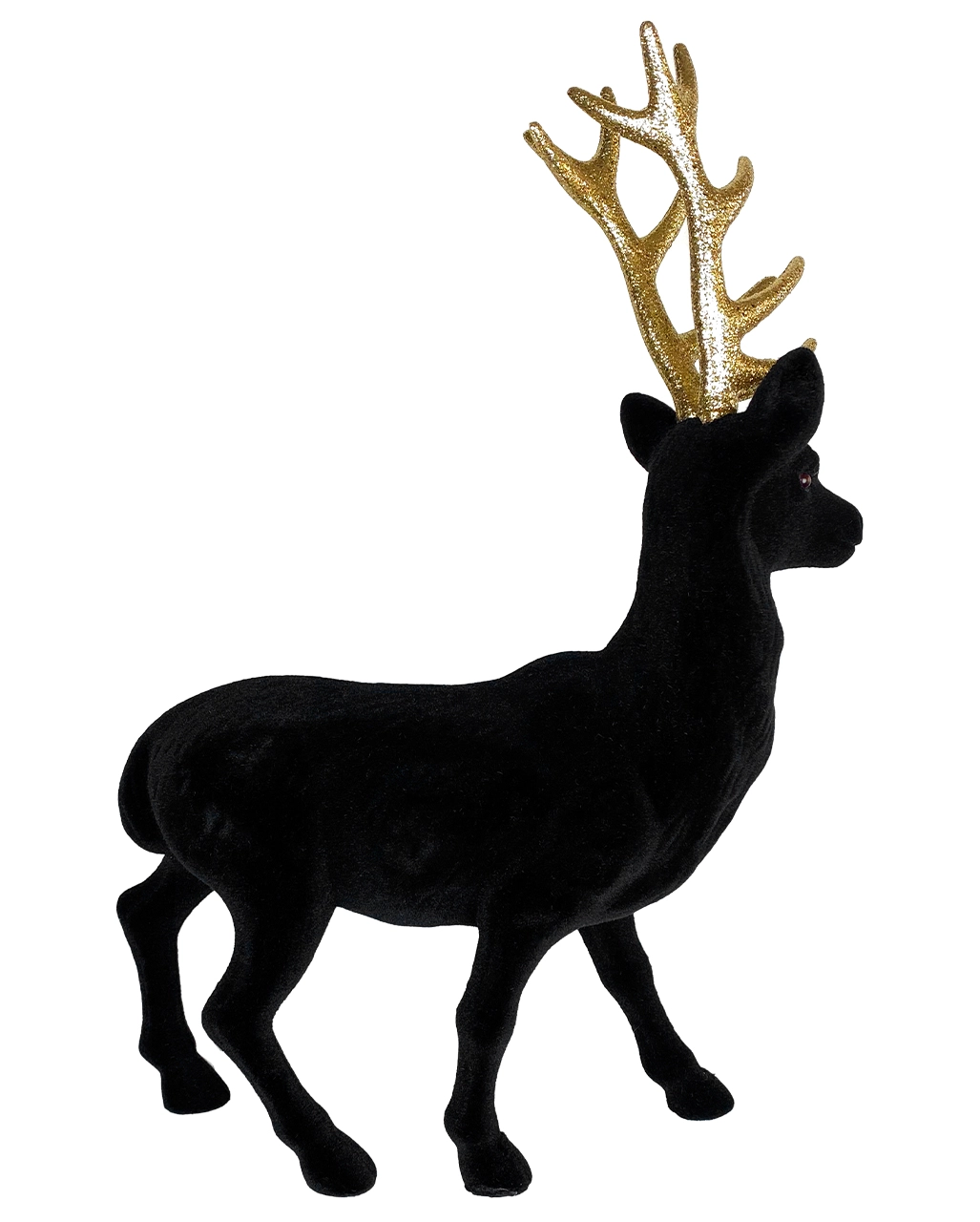 Ob auf dem Tisch, der Fensterbank oder im Regal, der schwarze Hirsch Samt beflockt kann sich sehen lassen. Unser edel anmutender Hirsch ist aus Kunststoff und wurde mit schwarzem Samt beflockt. Als besonderen Eyecatcher besitzt der Gothic Deko Hirsch ein Gold-glitzerndes Geweih. Mit einer Höhe von ca. 30 cm macht er sich besonders gut für deine weihnachtlichen Gothic Dekoration.