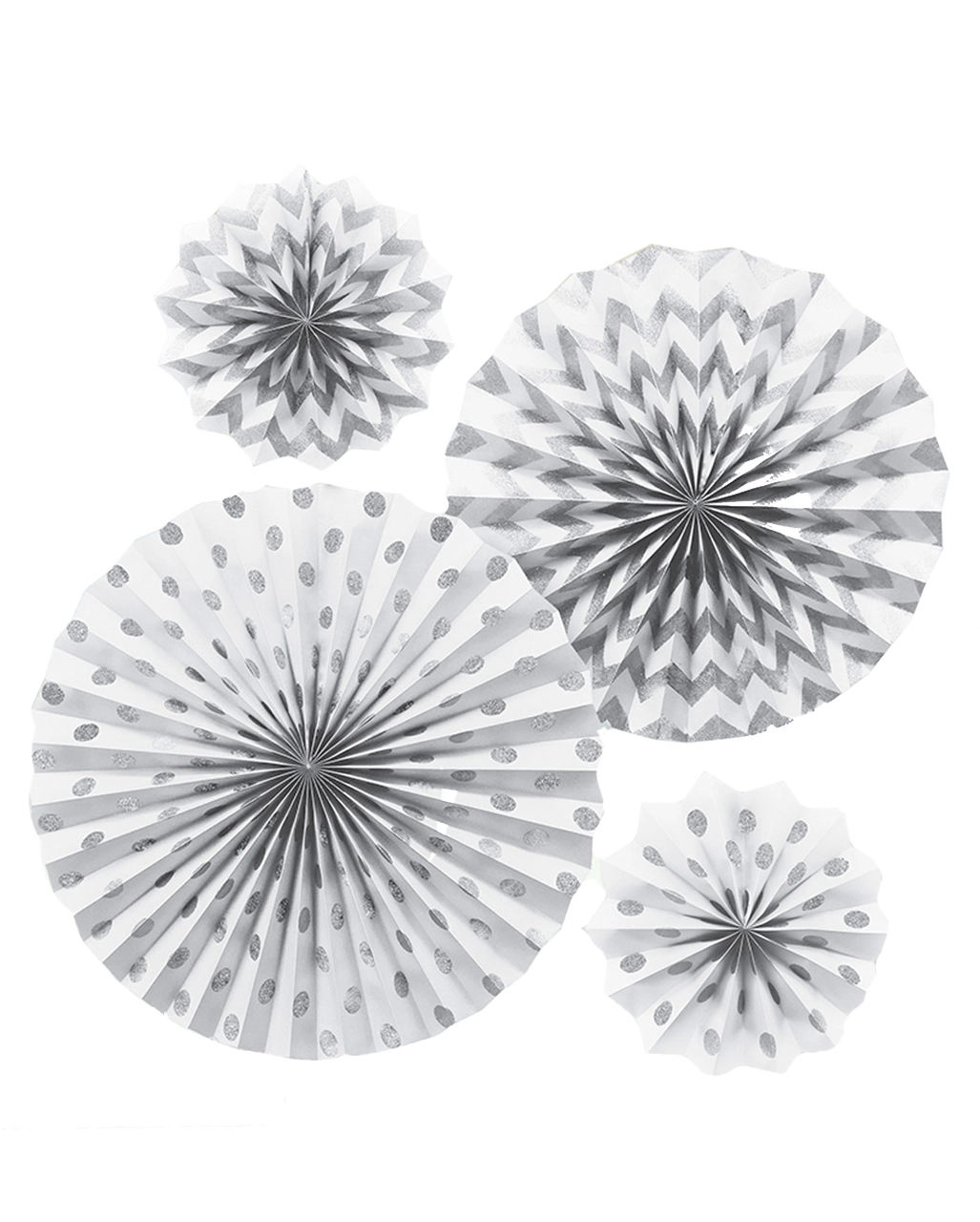 Du bekommst ein Weißes Fächer-Deko Set bestehend aus 4 unterschiedlich großen Papierfächern Die weiße Hängedeko kann Innen an der Decke angebracht werden. Bei trockenem Wetter kannst du die Deko-Fächer aus Papier auch außen anbringen und stimmungsvolle Akzente setzen. Entdecke noch mehr eindrucksvolle Papierfächer als Partydeko, wie unsere Silberner Wabenfächer 45cm